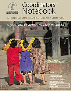 In-person information exchange also characterises CG's work. Members have given presentations at key fora and meetings, and have offered substantive input into processes such as the development of the Education for All (EFA) Global Monitoring Report. Also, each year the CGECCD gathers for a Consultation, which is designed around an agreed-upon theme that is seen to be critical and timely in the field of ECCD. During the Consultation, all CG partners, the Secretariat, the Executive Board, and other invited and interested individuals and organisations working on the agreed-upon theme come together to review, reflect upon, debate, and (eventually) synthesise current practices, gaps, and issues on the selected topic. Thematic discussion papers and/or background materials are prepared and shared at the meeting. Out of the discussions and review of what is happening (or not) on the ground, specific publications are prepared - most commonly, the Coordinators' Notebook. In addition, new topics and future themes are identified.