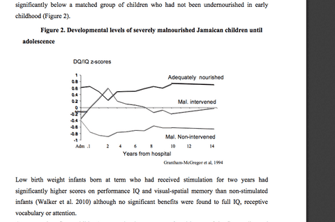 Design: The report is divided into several sections. Firstly, a brief discussion of the importance of early stimulation for young children in developing countries is provided. Secondly, the methods used to identify and characterize studies are provided and a review of randomized or quasi-experimental trials is presented. Thirdly, a review of the evidence for who benefits most from early interventions is presented followed by a review of program characteristics that affect the success of interventions and an examination of potential mechanisms through which interventions achieve their effects. Finally, recommendations for practice and future research are provided.
