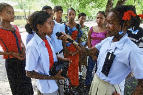 In addition to information and communication technologies (ICTs), this project also draws on face-to-face interactions. The Children's Radio Clubs are designed to reach out to children and reflect their needs as they help to educate both members and their peers about the issues raised in radio programmes. Club members identify topics to be covered by the radio broadcasts, including HIV/AIDS awareness, promotion of the rights and responsibilities of children, current affairs, the role of girls and women in community development and peacebuilding, education and learning programmes, and sports news.