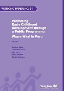 This paper presents the results of a Young Lives study into the impact and perceptions of the Programa Nacional Wawa Wasi, a Peruvian government programme for impoverished children aged 6-48 months. The paper presents and discusses information on the subsequent development of a sample of children who went to Wawa Wasi in comparison to children who did not participate. It also provides qualitative information on the implementation of the programme and on ways key actors believe the functioning of Wawa Wasi could be improved.
