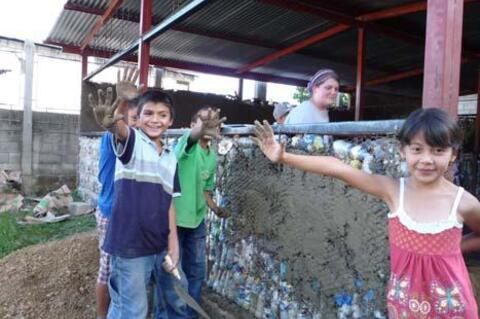 Volunteer Laura Kutner addressed the problem of insufficient waste management, including trash burned outside of homes or thrown on the ground, by recycling plastic bottles as school building material in Granados, Baja Verapaz, Guatemala. As a United States (US) Peace Corps volunteer in 2008, Kutner built upon the experience and knowledge of Pura Vida Atitlan, an organisation that started building out of plastic bottles stuffed with trash, or "eco-bricks."